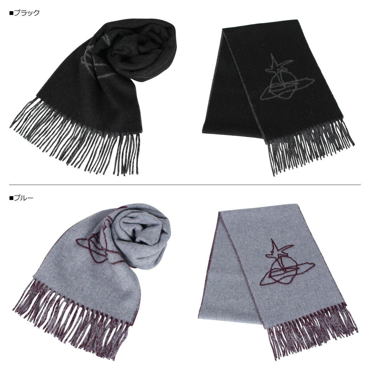 【最大600円クーポン】 Vivienne Westwood MUFFLER ヴィヴィアンウエストウッド マフラー メンズ レディース ウール ブラック グレー ネイビー ワイン レッド ブルー グリーン 黒 11150