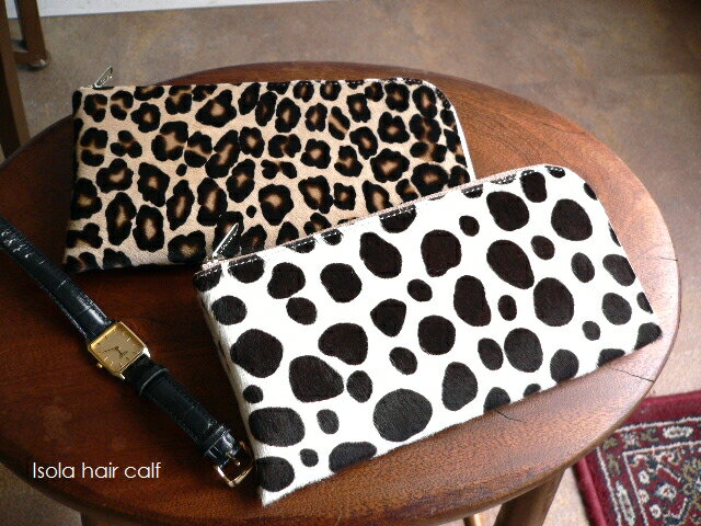 クーポン対象外 ノベルティ&レザークリームプレゼント ISOLA アイソラ 長財布 ギャルソン L字ファスナー ハラコ ファー 毛皮 3926 ヘアカーフ ダルメシアン/レオパード