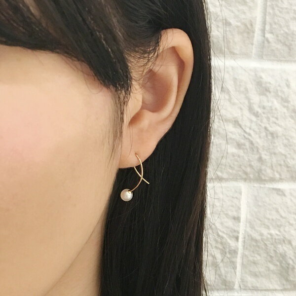 テイクアップ ピュアのクロスカーブタンスイパールピアス耳元を3次元で遊ぶ変形ワイヤータイプです。