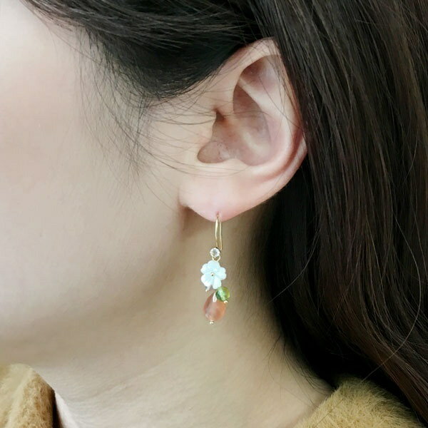 テイクアップ ピュアの【 Palette】 お花とオレンジムーンストーンピアスチャーム( YG)組み合わせて楽しむピアスチャームシリーズ【 Palette】 優しく柔らかな印象を与えてくれるオレンジムーンストーンがポイントのお花つきピアスチャームです。